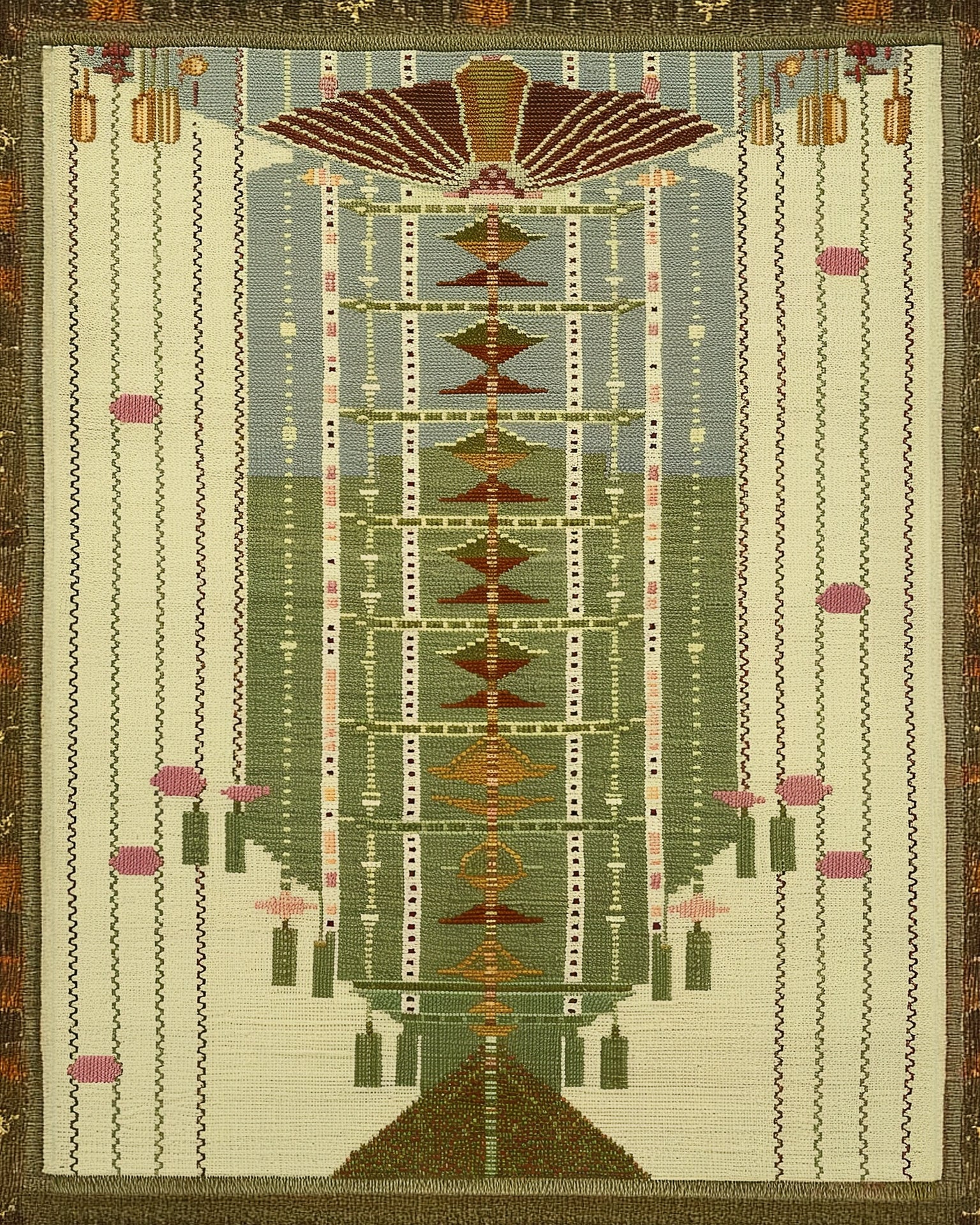 “This archival fine art print of Forbidden Tree highlights the tapestry’s towering, symmetrical arboreal form set within a field of delicate ornamentation. Layered branches, tapering ascent, and botanical motifs evoke themes of desire, transgression, and spiritual transformation, inviting viewers to contemplate the thresholds where knowledge, temptation, and renewal converge.”