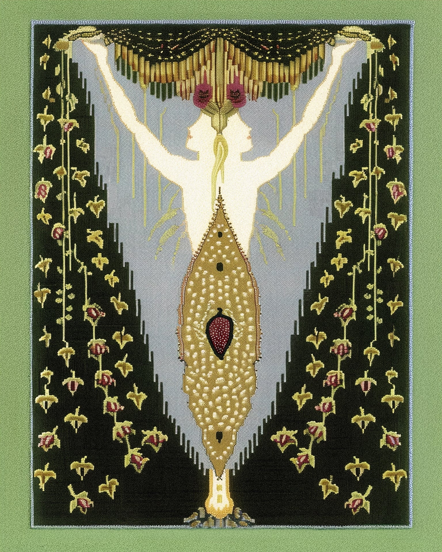 This archival fine art print titled "Stewards" features mirrored figures surrounded by an intricate botanical field. The balanced symmetry and detailed floral motifs suggest mythic cycles of decay, renewal, and quiet transformation. It invites viewers to reflect on the threshold where life, surrender, and rebirth intersect.